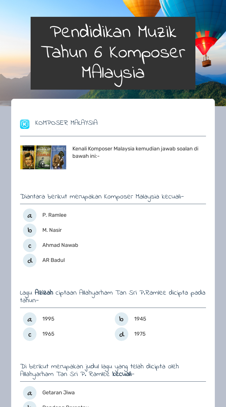 Tahun 6 Komposer Malaysia DRAFT. Oleh sebab itu beliau dikenali ramai sebagai Sifu muzik tanahair. Panduan Pengajaran Pendidikan Muzik Tahun 6.