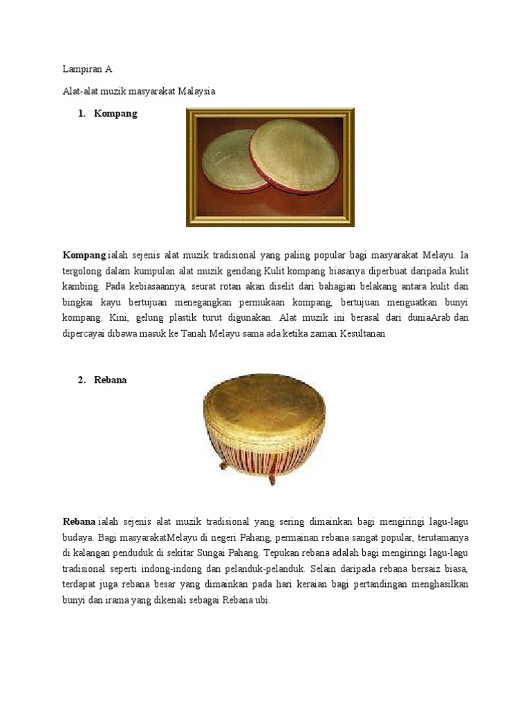 Manakala belulang pula adalah daripada kulit kambing. Kompang adalah sejenis alat muzik tradisional dari keluarga membranofon. 1 Antara berikut yang manakah gambar alat muzik kompang.
